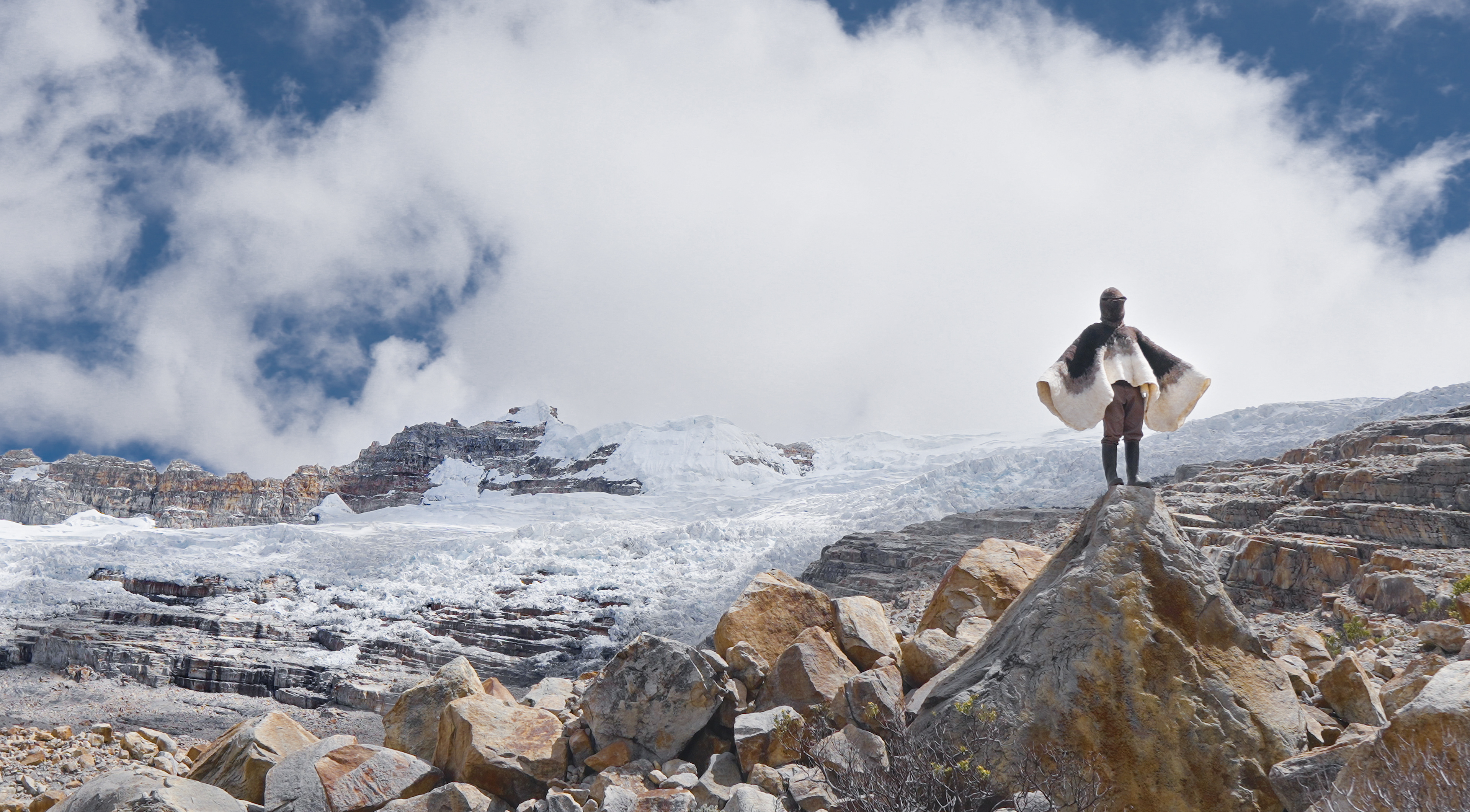 Vestirlas es encarnar la montaña y el vuelo, es activar un vínculo entre el cuerpo humano y el espacio que habita. A través de este díptico textil, las Ruanas Hermanas Ritak'uwa se convierten en una ofrenda al cóndor, a su persistencia y a su memoria en el territorio.